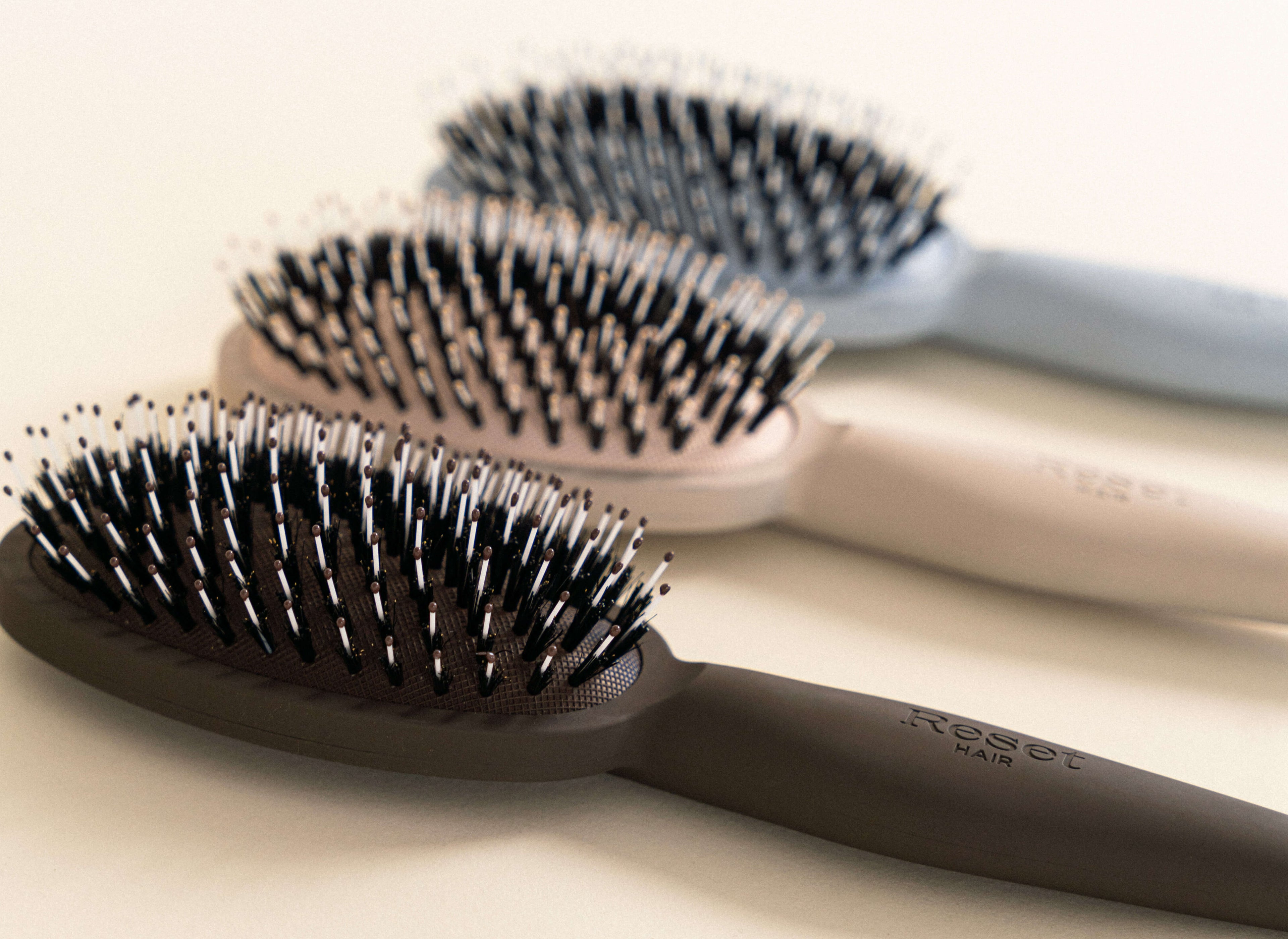Available in three stunning colors, our detangling brush combines beauty with functionality. Created with a blend of boar and nylon bristles to allow for gentle detangling, our brushes come in a chic matte finish and sleek design. With this brush you never have to compromise aesthetics for hair care.